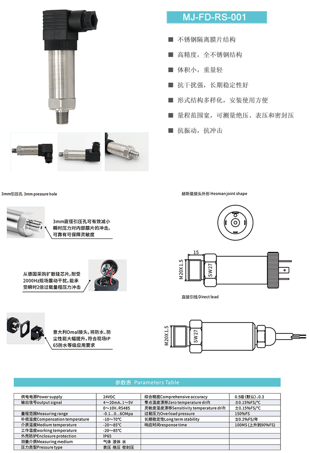 首页 > 产品中心 > 压力传感器 > 压力变送器